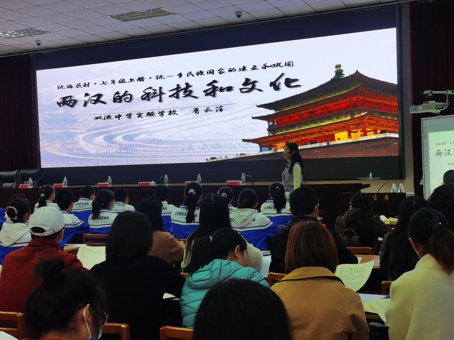 星空在线登录官网健全人格教育课题组文科方向历史学科晋云萍老师受双流区教科院历史室委派,代表双流区与成都市二十中陈柯剑老师同课异构。晋老师在《基于健全人格培养的德育课程化实践研究》探索下,选择了校本人格体系中意识倾向维度认知板块里“人生观”“道德观”要素,围绕中国历史七年级上册《两汉时期的科技文化》,以“真、善、美”的中国智慧和中国力量为立意,从“发明创新,共享文明之美”、“救死扶伤,守护岁月静美”、“秉笔直书,叙写千年真情”、“文明互鉴,教化与人为善”四个方面展现了两汉文化所蕴含的“真、善、美”的内涵。充分挖掘历史细节,以两汉时期“真、善、美”的历史人物活动感染学生,让学生在潜移默化中理解两汉文化的内涵,内化历史人物的优秀品格。与现实相结合,以“真、善、美”的中国智慧和中国力量启迪学生,鼓励学生传承优秀传统文化,在润物细无声中达到立德树人、健全人格的效果。