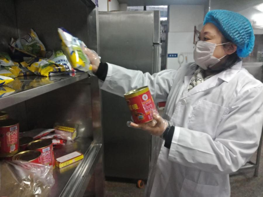 八、学校后勤晏良彬老师在食堂进行日常检查。