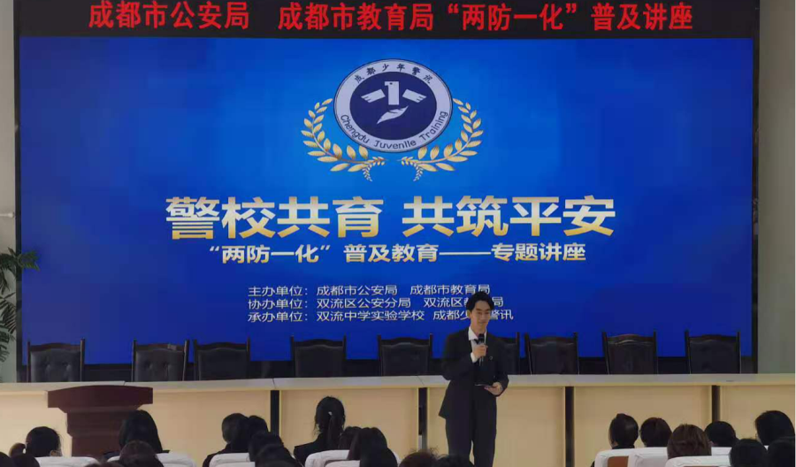 在本次“两防一化”专题讲座活动中,首先由双流区公安局棠湖派出所扎西青措副所长强调了校园“两防一化”工作的重要性,并对警校共育、共筑平安校园建设工作的推进情况进行了介绍。