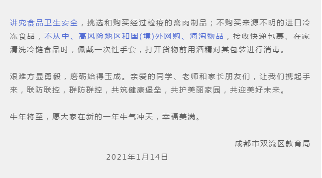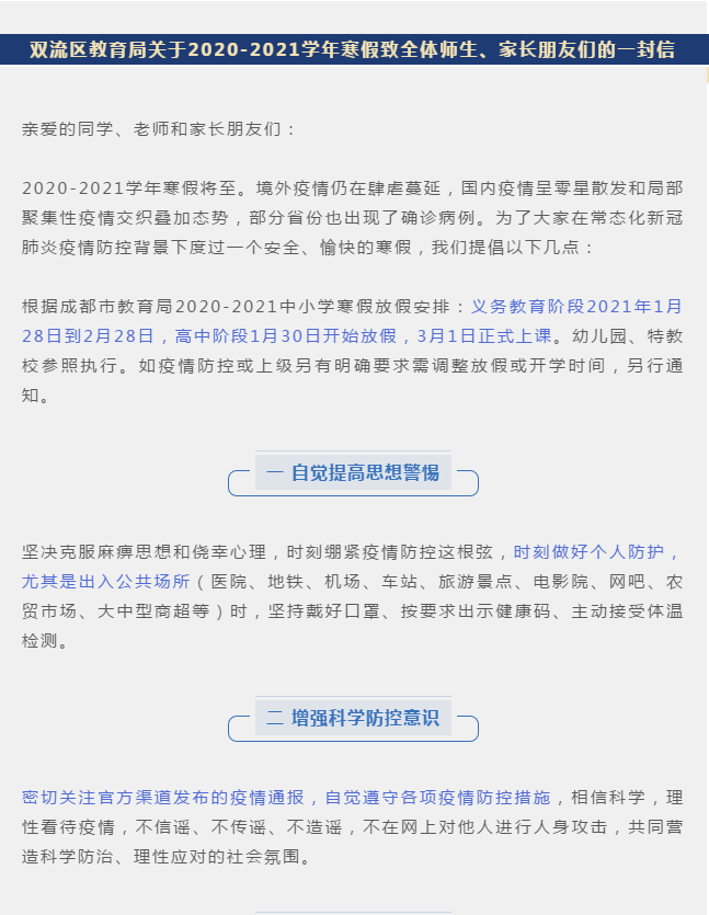 双流区教育局关于2020-2021学年寒假致全体师生、家长朋友们的一封信