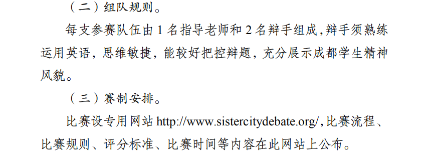 关于举办 2021 中国(成都)·美国友城 青少年英语辩论挑战赛的通知