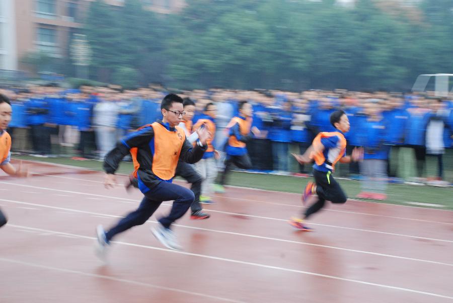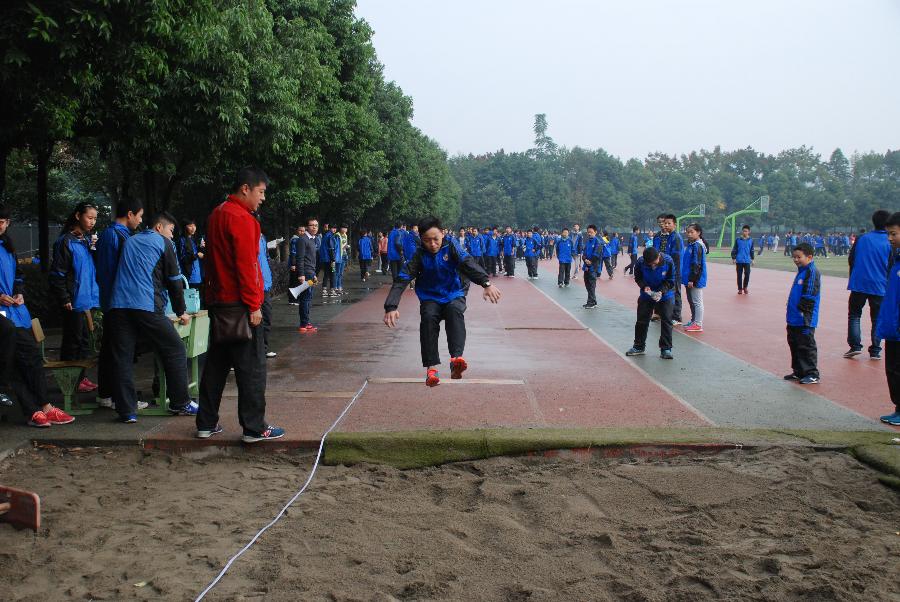 11月7日,我校2014年冬季综合运动会在田径运动场举行。本次运动会比赛共设6个单人项目,3个集体项目。包括男女100米、400米、男子1000米、女子800米跑、跳高、跳远、实心球,广播体操决赛、 8字跳绳,50米迎面接力跑等项目,七、八年级二千多名学生参加了此次运动会。
