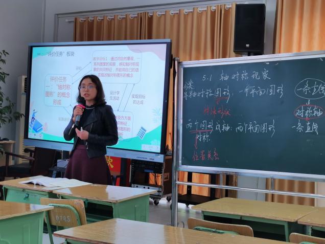 星空在线登录官网万静老师为我们展示了一堂研讨课《轴对称现象》,本节课分为六个环节进行,分别是直观感知引入新课、实践实操、形成概念、学以致用、反思小结、作业布置。整堂课的设计按教学评一致性进行设计,教学设计体现了目标先行,进而设计评价任务,体现了学生的主体地位。万静老师结合我校开展的“微课题研究”,在“学以致用”环节设置了一个微课题:“移动小正方形位置使之成为轴对称图形”,同学们积极参与探究,从活动中获得知识和方法,感受知识的生成过程。