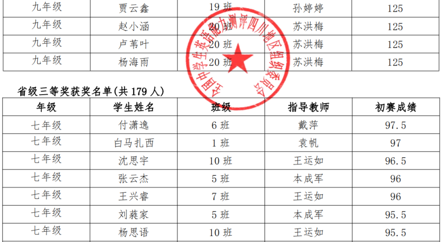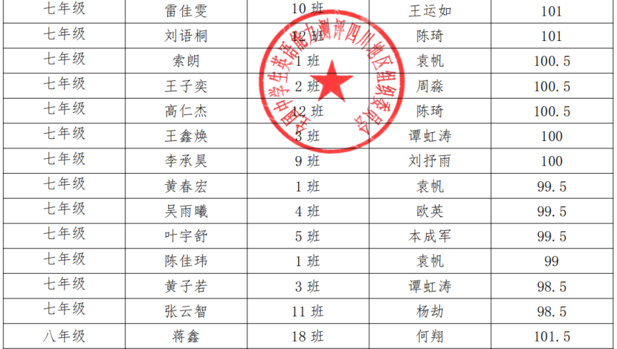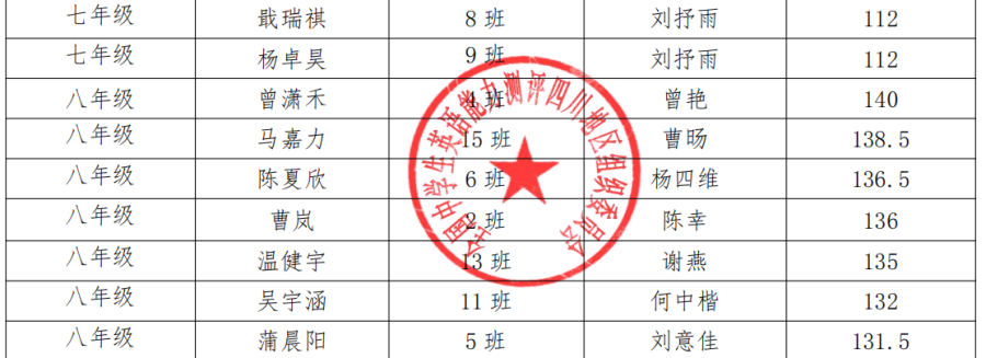 2020 年全国中学生英语能力测评星空在线登录官网测评点全国奖获奖名单