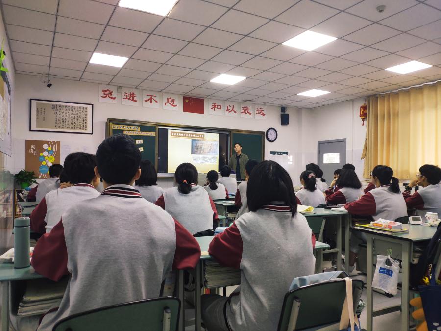 首先,工作室老师齐聚高中部高一(1)班,观摩赵老师的公开课例:《城市建设开发与古建筑的保护》。赵老师以幽默诙谐的语言表达方式,讲述了城市建设开发的必要性,参照实际情况,以本地的古建筑破坏及众所周知的一些古建筑遭受到破坏的具体实例,阐述了古建筑的保护的重要性并且已经到了迫在眉睫的地步。课后,工作室所有老师对这节课进行了评课议课,每个老师都发表了自己的看法,并提出了诸多优点缺点,吴老师在总结后,对所有老师提出了要求:要善于总结自己课的问题,牢牢抓住“教、学、评”一致性。