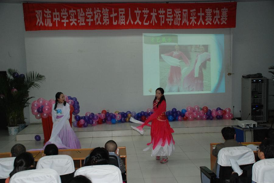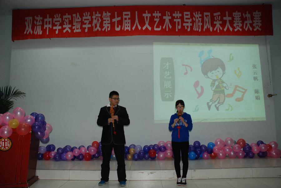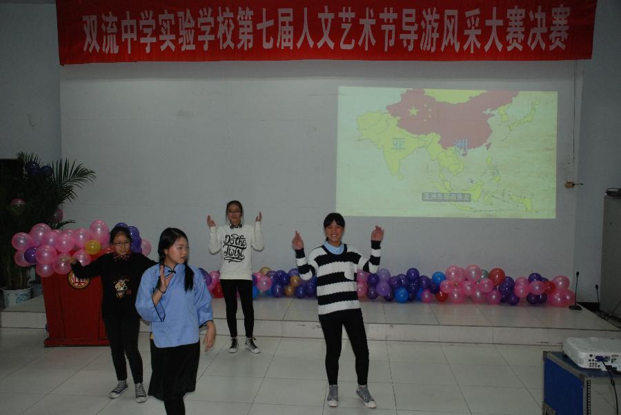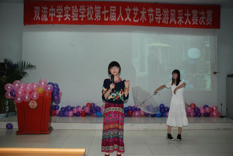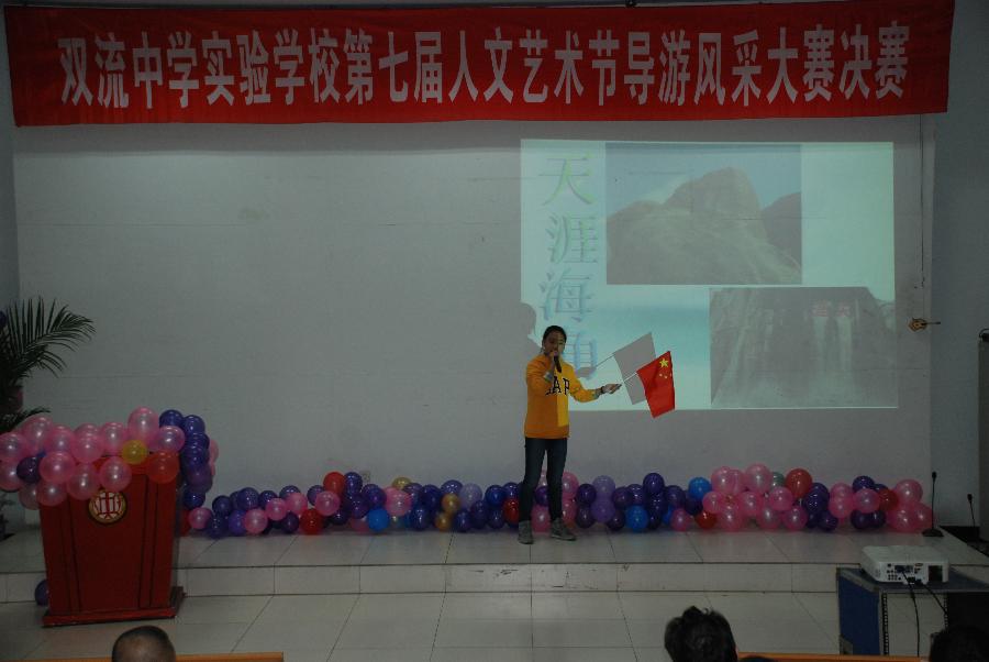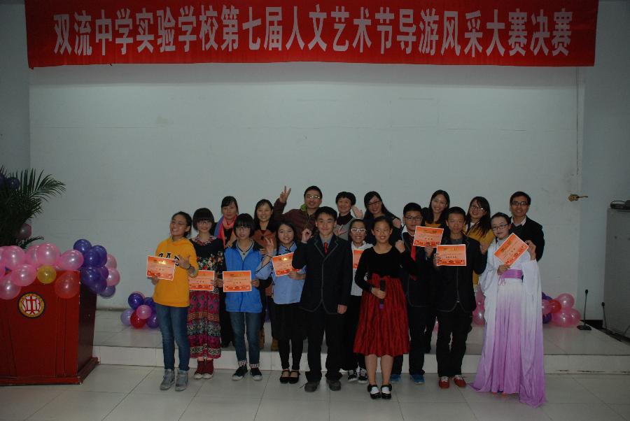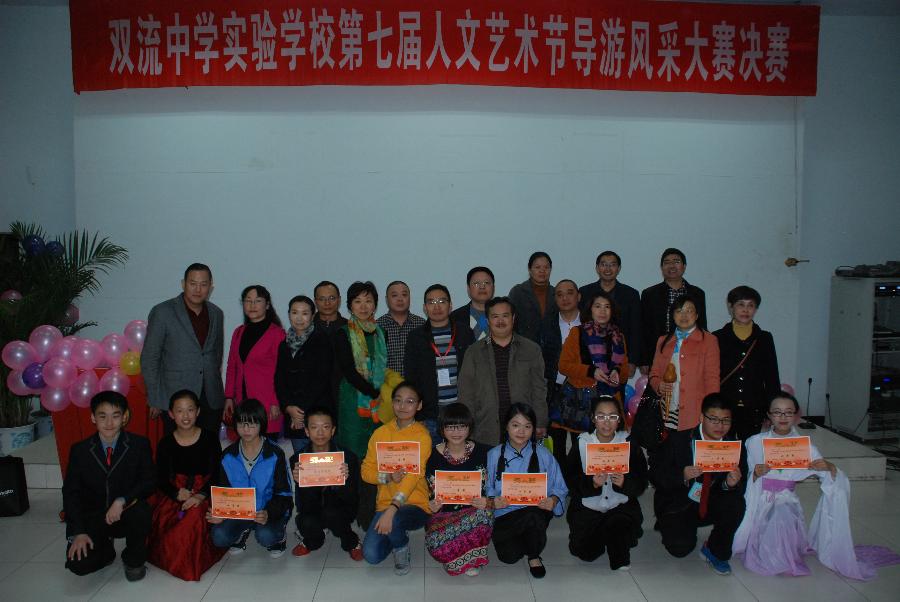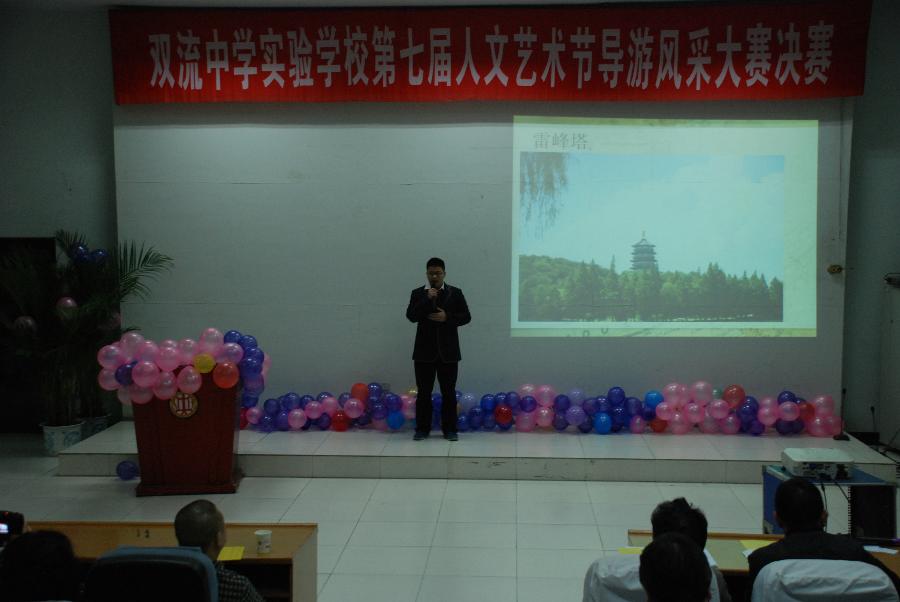 经过9月初选,10月复赛,于11月11日在我校学术厅成功举行第七届人文艺术节导游风采大赛决赛,莅临本次决赛的领导有双中实验校高校长、张校长,行政办刘主任,教科室文主任,教务处周主任,参加的八名选手均来自于八年级各班,各选手的父母也被邀请参加了本次决赛。