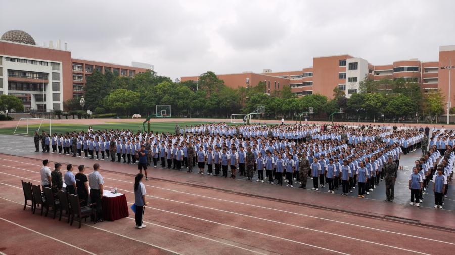 2021年8月30日上午9:00,成都星空在线登录官网初2024届综合素质拓展活动开营仪式在我校运动场隆重举行,我校罗晓章副校长、邓光伟主任、年级组长黄智全老师、团校委书记王俊老师和素质拓展营营长杨坤同志莅临本次活动,初2024届全体新生、带队老师及训练教官共同参与了此次活动。