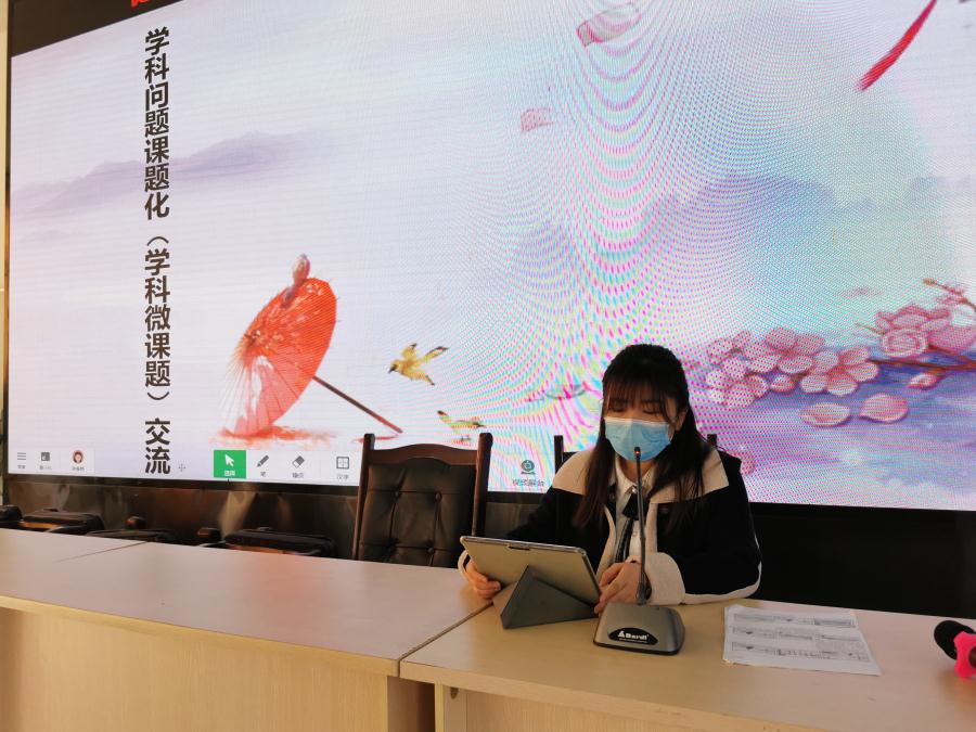 首先,学科问题课题化小组成员余春艳老师为语文组全体教师介绍了该课题情况。第一,明确了学科问题课题化即微课题教学的内涵,即把教学中的重难点问题转化为课题,以活动的形式进行探究。第二,用语文课微课题教学实例举例说明,以强化认知。