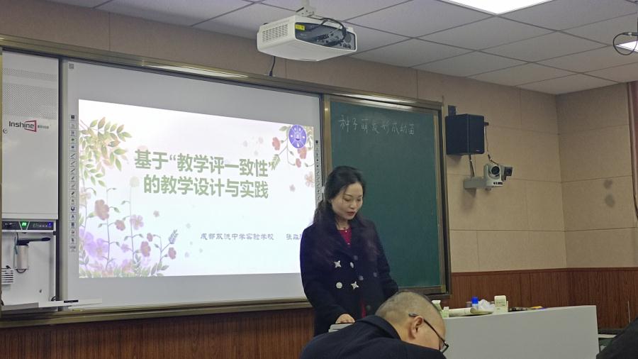 2021年11月23日,双流区初中生物教研活动在金桥中学如期举行,全区初中生物教师共计60余人参与本次研讨会,本次会议由双流区教科院初中室副主任、生物教研员杜尚兵老师主持。我校生物组老师全程参与本次教研活动,张淼玲老师作为双流区生物学科带头人和学校生物科学名师工作室导师作了题为“基于教学评一致性的教学设计与实践”的专题讲座,受到与会老师的一致好评。