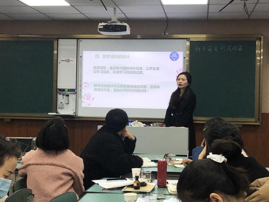 教研会第二个环节是由我校生物科学名师工作室导师、双流区生物学科带头人张淼玲老师作专题讲座。张老师分别从“教学评一致性”的研究背景、学习目标的制定、评价任务的设计和教学活动的设计四个部分进行了专题分享。张老师认为传统的备课教学设计关注教,忽视学;关注内容,忽视目标。从而表现出教学评不一致,具体问题表现为三个问题,一、目标问题:无目标或缺乏目标意识;有目标,但目标制定不具体、不可评价;只有少部分人会从课程标准中寻找目标。二、教学活动:教学活动与目标不匹配;被教材“牵着鼻子走”;注重知识传授,弱化过程、能力、情感。三、评价问题:无评价或缺乏评价意识;有评价,但评价与目标不匹配。