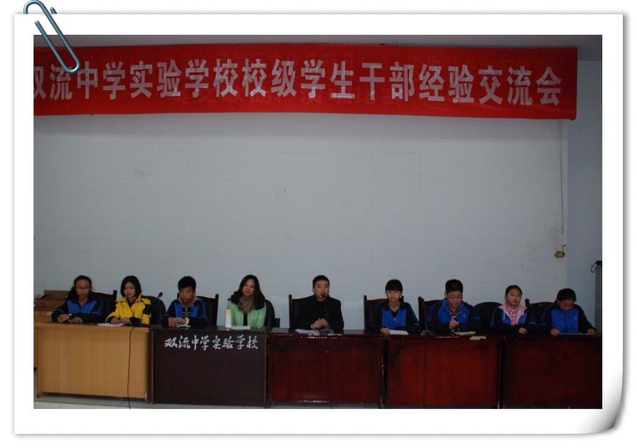 2014年12月1日下午,校学生会2015届2016届2017届各个部门的学生干部在学术演讲厅展开了新干部与老干部的经验交流会,这次的交流会主要围绕七年级新学生干部该怎样熟悉工作为主。交流会开始前,德育处的王俊老师提出了:“在岗一分钟,做好六十秒”的话题,这句话,是作为一个学生会干部最应该做好的一件事,这也应当是学生会干部工作时的真实写照。随后,九年级的老干部开始了新学生干部的经验交流会。