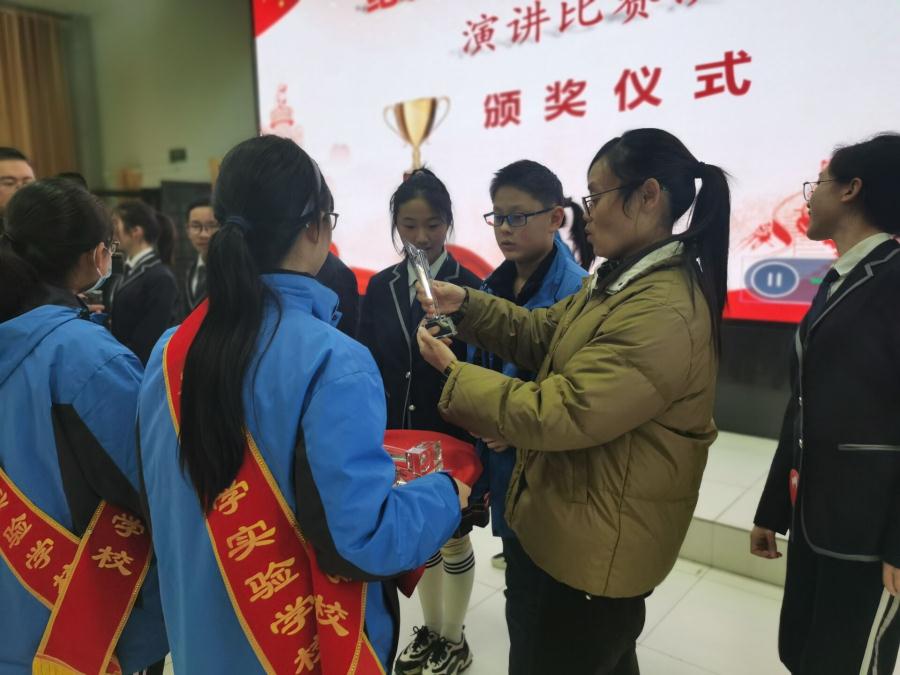 活动结束后,德育处主任王敏蓉对学生的表现给予了高度的肯定,他认为本次活动是对学科育人目标落实的一次有益尝试,学校健全人格课题落地生花。最后,德育处主任王敏蓉、团校委书记王俊为当晚的演讲之星颁发了奖杯和奖状。