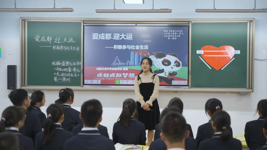 胡燕老师的课堂实录以统编版八年级上册第一单元《走进社会生活》为基础,整合设计第一课为一堂综合实践活动课,融收集资料、问卷调查、现场采访、行动落实为一体,以成都正在如火如荼筹备的大运会为主题,基于学生在双流承办大运会过程中真实的所见所闻,引导学生深切感知个人与社会的相互依存关系 ,关注社会发展变化,明确自身肩负的使命,并身体力行“亲社会行为”,宣传大运会、助力大运会,在社会实践中提升个人价值。整堂课充分展现了双流魅力与学生实力,是星空在线登录官网长期开设综合实践活动课程和健全人格教育的成功体现。