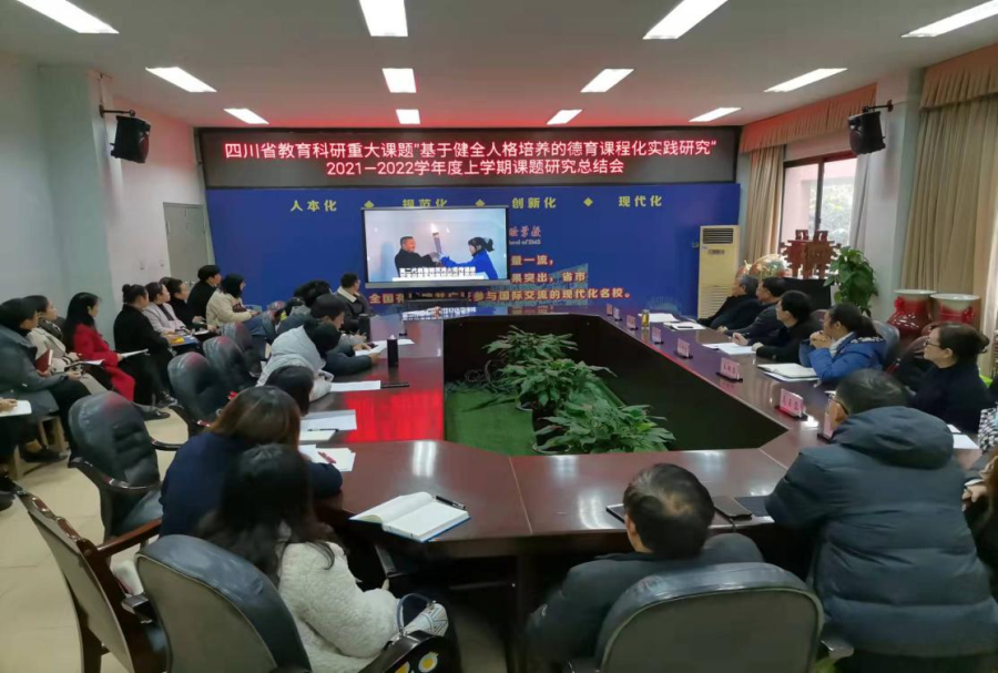 2022年1月15日上午9:30,四川省重大科研课题“基于健全人格培养的德育课程化实践研究”阶段总结会在星空在线登录官网第三会议室隆重召开。文科子课题组由英语组教研组长周淼老师带领研发小组谭虹涛老师和阶段研究员董天娇老师以《立足学科本位,拓展育人场域,提升“育人”新高度》为题进行了精彩的研究分享和交流。