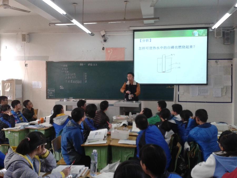 2014年12月2日(星期二)上午第5节课,我校优秀青年化学教师李雄老师在九年级13班展示了一堂精彩的公开课——《燃烧和灭火》。 李老师采用“探究式教学”模式,通过构建两组科学探究学习情境,引导学生通过实验探究主动建构燃烧和灭火的知识体系,总结出燃烧的条件和灭火的原理,同时对知识进行了拓展应用。整个流程循序渐进,一气呵成,让学生既掌握了燃烧与灭火的知识与技能,又体验了科学探究和控制变量的学习过程与方法,同时还培养了化学社会技术环境的情感态度与价值观,体现了新课程改革理念,学生学习效果显著。