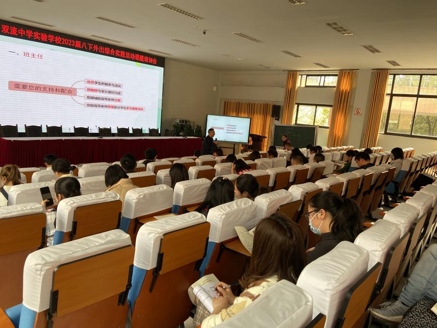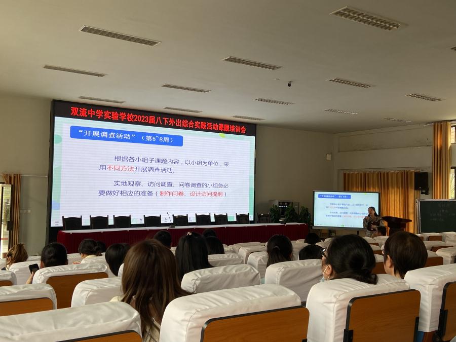 本次外出综合实践活动课题培训会主要分为两大板块,首先是对2023届全体班主任进行课题培训,主要是在动员学生积极参与、做好与家长的沟通、辅助指导老师及参与调查活动等多方面争取班主任的大力支持与配合。