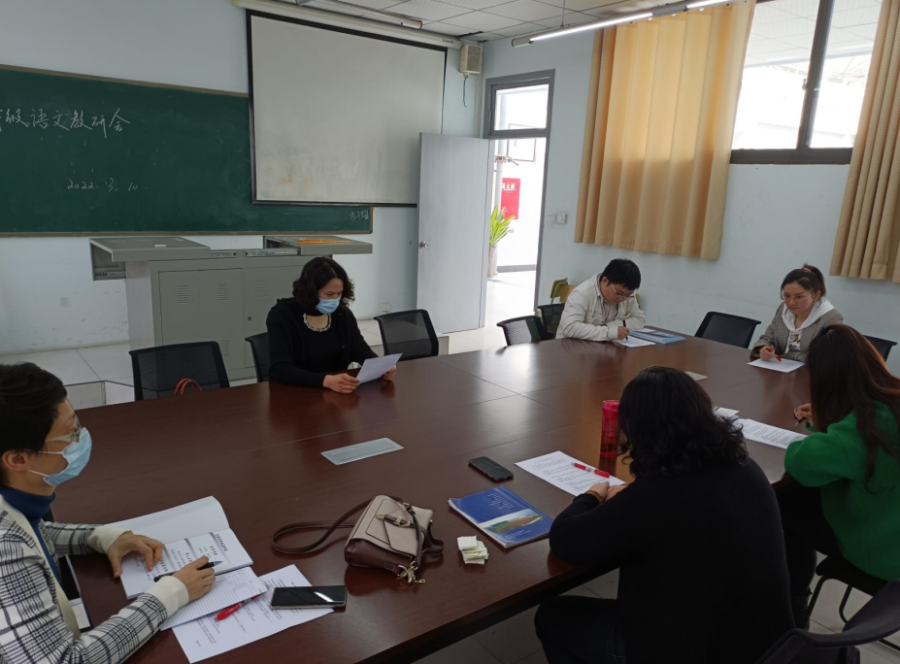 2022年3月10日星期四上午,文创班备课组期初工作会在图书馆会议室召开。会议由文创班备课组长谢娟老师主持,语文组牵头行政孙久木主任参会。