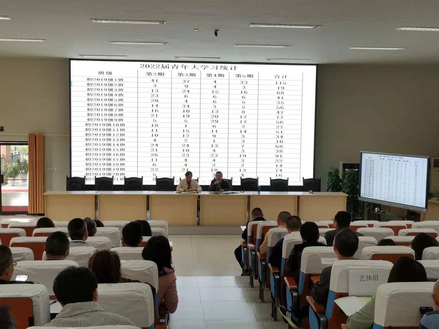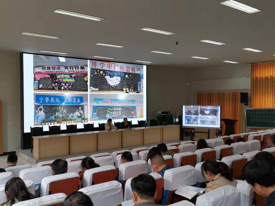 团校委书记、德育处学生工作组长王俊老师通报了各班本学月班级文化建设检查、教室清洁卫生常规检查和团员青年大学习完成情况,并分享了部分完成情况优秀班级的教室和黑板报的照片。全体班主任教师在观察中反思本班在班级文化和环境建设中存在的不足,在交流中寻找改进本班环境创设的方法。