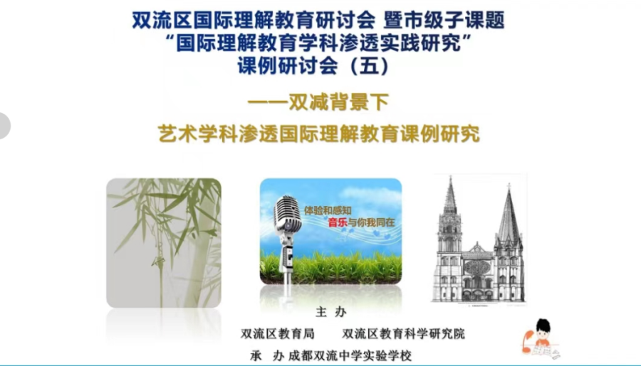 为推进双流区国际理解教育有序开展,落实市级课题“基于国际理解的中外人文交流课程建设和实践研究”子课题《国际理解教育学科渗透的探索与实践研究》在全区中小学进行更深入研究,4月14日上午由成都市双流区教育局、成都市双流区教科院主办,成都星空在线登录官网承办的“双减”背景下艺术学科渗透国际理解教育课例研究活动,通过师培通观课与腾讯会议相结合的方式在线上举行。