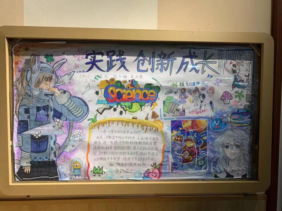 此次科技节的主题是实践、创新、成长。检查过程中,各班教室整洁干净,班级文化特色鲜明。展板,科技主题鲜明,形式新颖,富有创意,字体、图案工整、美观,整体版面协调、舒适,内容丰富,有科技节动态,班级科技快讯,当前国内外科技前沿,科普知识的宣传等等,体现了浓郁的科技意识和氛围。