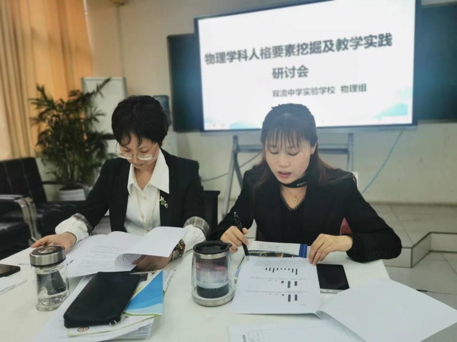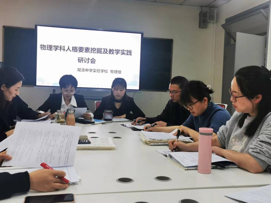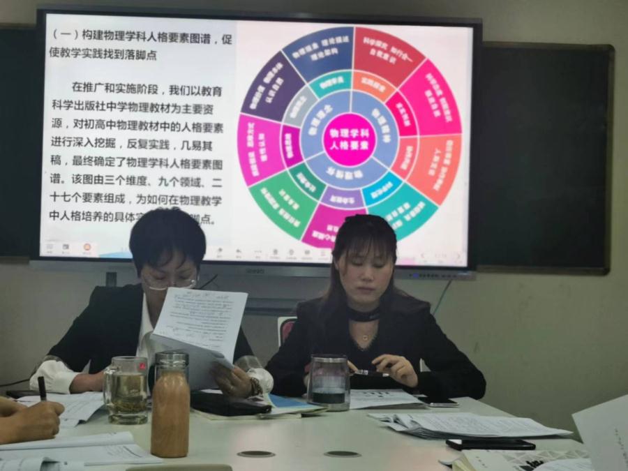 2022年4月14日我校初中部物理组全体教师在名师工作室召开“物理学科人格要素挖掘及教学实践”研讨会。