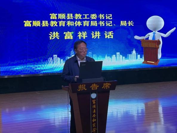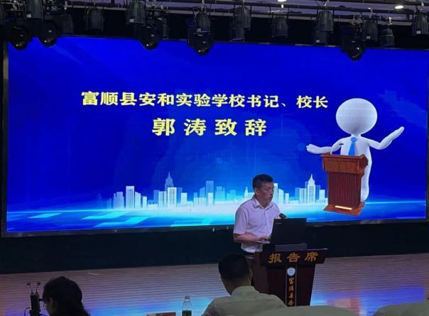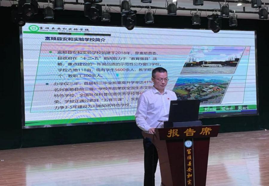 富顺县安和实验学校书记、校长郭涛为此次线上交流会致欢迎辞。富顺县教工委书记、富顺县教育和体育局书记、局长洪富祥做重要讲话。
