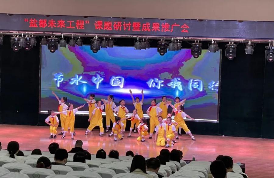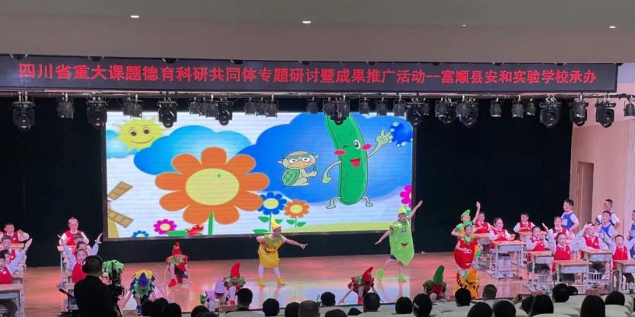 富顺县安和实验学校学生展演了《节约用水》、《健康动起来》和声管乐团的《花仙子之歌》。这些节目生动地展现了富顺县生态道德养成教育的实效。