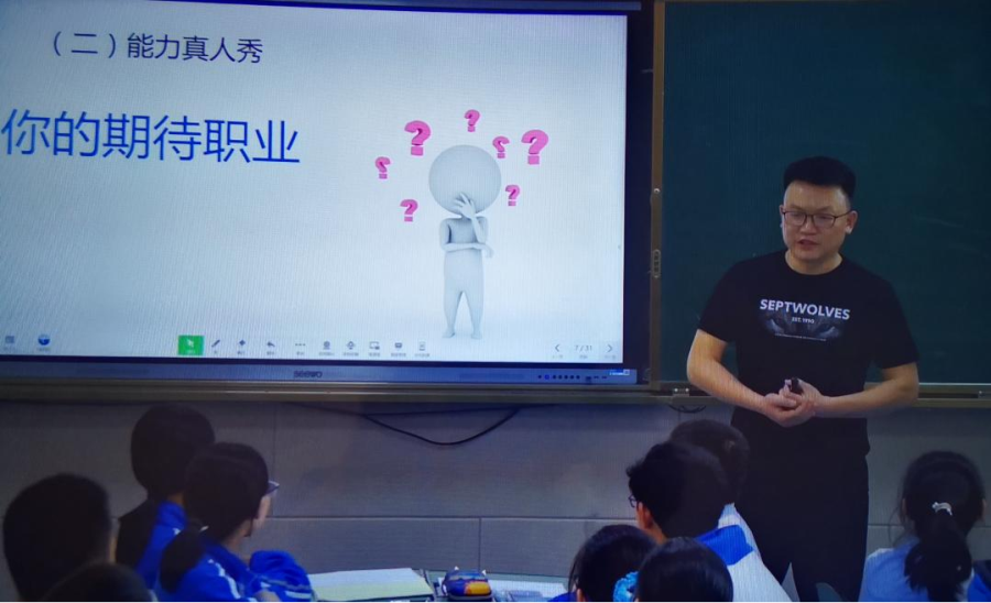 程国斌老师的设计拓展了学生关于能力与培养能力方法的认识,引导学生通过具体的行动去提升自己的能力,在未来的职业与现在的生活学习之间架起一座能力的桥梁。其中,能力“调色板”活动让听课老师印象深刻,学生们围绕自己所期待的职业,进行能力分解,思考能力落地的可行计划和执行方式。生生交流相互思想碰撞,拓展思考方向,相互借鉴学习。师生交流中,教师善于提炼学生发言中的亮点,善于引导、引领学生将思考深入化。