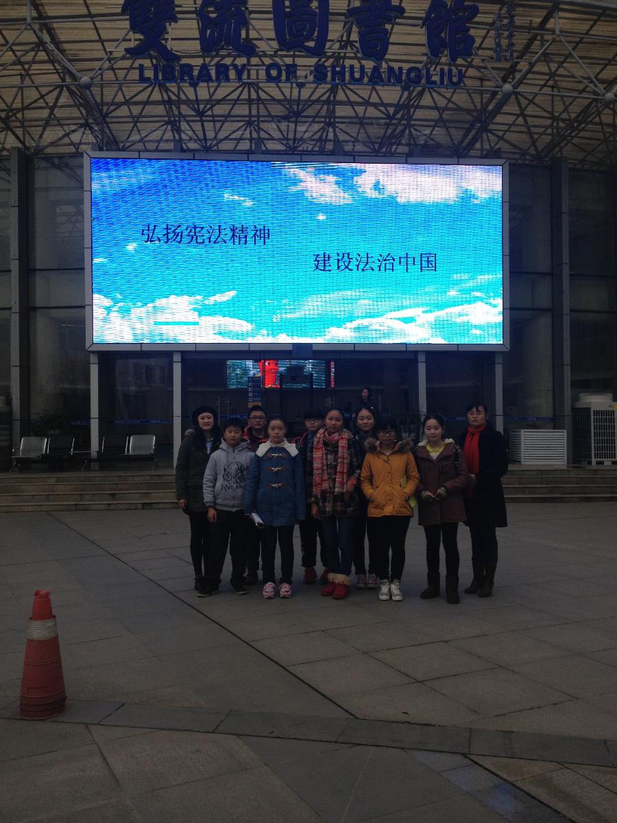 2014年12月13日,上周星期六,我校思品组小组研究性学习的同学,在指导教师王敏蓉和熊梓羽的带领之下,前往双流县图书馆查阅资料。在指导老师的帮助下,围绕研究课题《中国计划生育政策的调查研究》同学们分别用书名、著者、关键词进行检索,分小组查阅到所需要的书籍进行阅读。在本次小组外出活动中,同学们学习到图书检索的方法,通过阅读相关书籍,对本课题的相关知识有了更多积累,为下一阶段的研究学习打下基础。(报道人:熊梓羽)