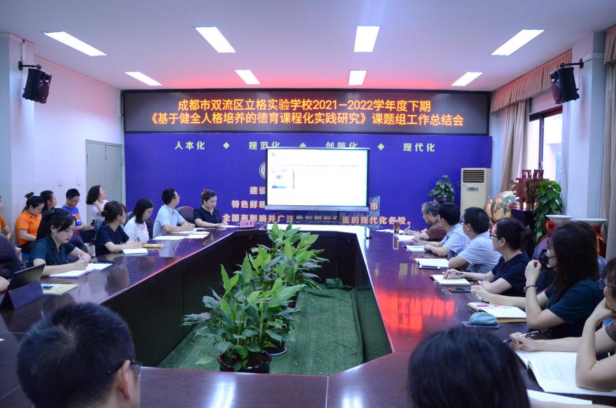 为进一步推进集团各学校健全人格德育课题研究和实施,促进各学段德育工作有效衔接,切实提升集团各学校教育育人品质,经学校行政会批准,成都市双流区立格实验学校教育集团2021--2022学年度下期健全人格课题组工作总结会于2022年7月6日上午9:00--12:00在初中部三会议室隆重召开。高志文校长、田志明副校长、教科室文传福主任、德育处王敏蓉主任、附小杨成根副校长、附属幼儿园高玉蓉园长、荣汇幼儿园周洋园长,以及小学部、荣汇幼儿园和附幼课题组主研教师代表们也参加了本次总结会并做工作汇报。