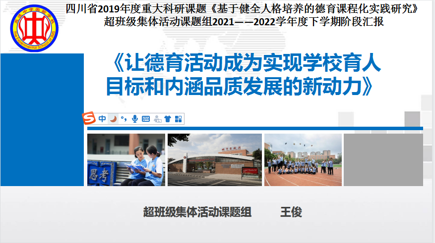 健全人格超班级集体活动课题组组长王俊老师代表课题组作了题为——《让德育活动成为实现学校育人目标和内涵品质发展的新动力》的主题汇报。