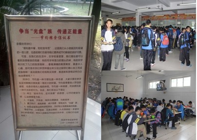 保持良好的就餐秩序,自觉排队就餐;打菜文明有序,不争,不抢,不夺,不多拿碗筷、盘子;不偏食挑食,注意营养搭配,爱惜粮食,杜绝浪费;就餐时不大声喧哗,注意个人形象,尊重他人;爱护餐具,轻拿轻放,吃完饭后把餐具放在洗碗池里;不把餐具带出食堂,也不损坏餐具,爱护公物,人人有责;注意食堂卫生,就餐后把桌子上的杂物随盘带走,不乱扔餐巾纸或者食物残渣。从进餐厅,用餐到离开餐厅,每一环节都包含着良好习惯的养成。只有从细节入手,才能使学生养成一个良好的就餐习惯。