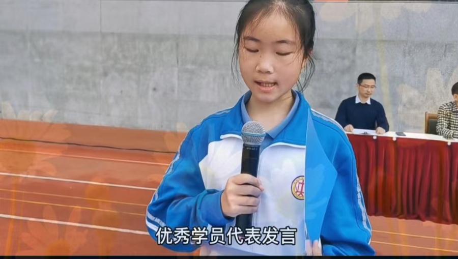 来自素质拓展九班的曹雅韵,代表全体同学发言。她首先感谢了教官和老师们的关心和爱护并表示:大浪淘沙,方显真金本色;暴雨冲过,更见青松巍峨!我们会从现在做起,从自己做起,在“自主、合作、务实、创新”校训指引下,在立格实验成长为一个“全面发展、个性特长、人格健全”的人!