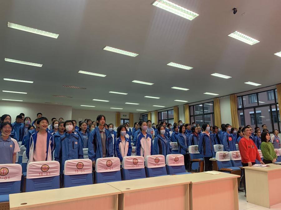 成都立格实验学校团校委、学生会于2022年10月19日(第八周星期三)下午18:00,在学术演讲厅召开八年级学生干部换届选举竞选大会,到会的各位领导、老师,他们是:共青团成都立格实验学校委员会书记王俊老师,成都立格实验学校德育处雷蓓蕾老师、谢华老师、彭钰老师。金秋十月,硕果飘香,在这青春激扬、不断奋斗的时节里,我们齐聚一堂,共同见证成都立格实验学校2022——2023学年度团校委、学生会八年级换届选举大会。