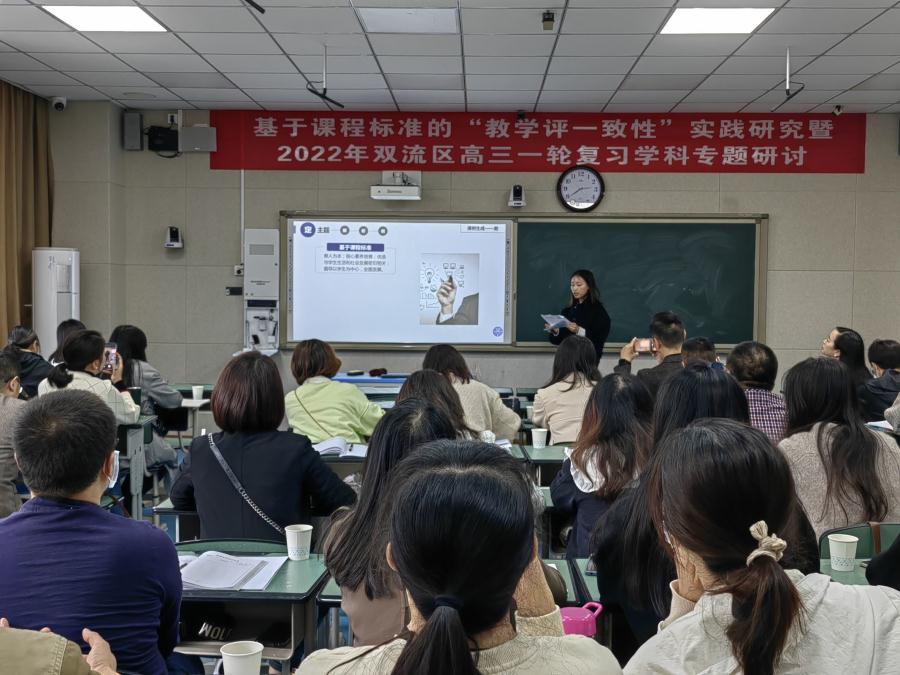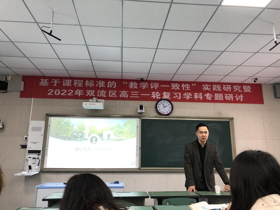 2022年10月18日,双流区地理教研会在双流中学展开,双流区地理教研员刘冕老师和全区地理教师准时到场参加会议。
