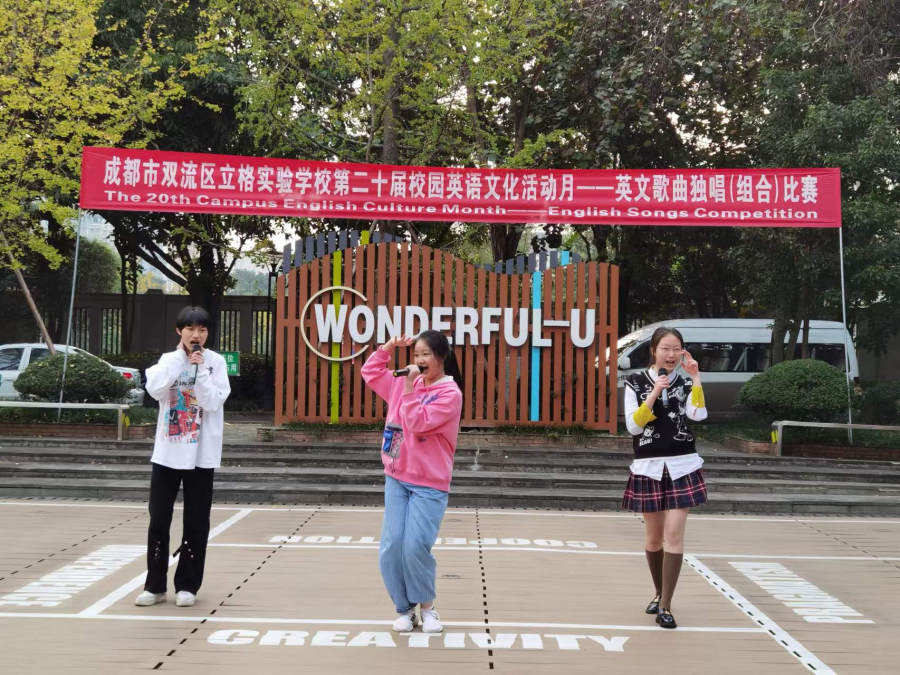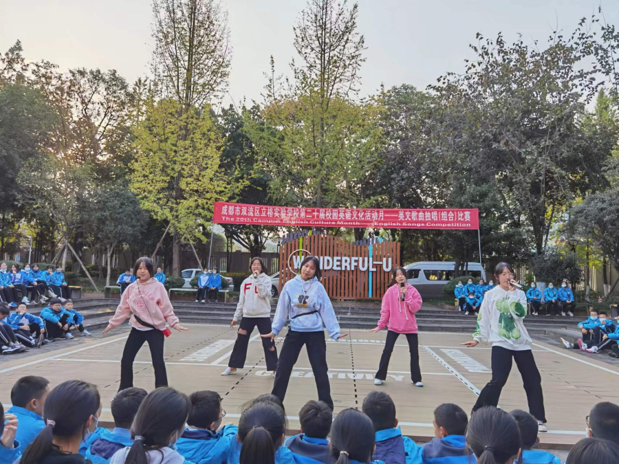 本周一11月14日下午,期待已久的九年级英语独唱(组合)比赛在英语角小广场举行。本次活动吸引了许多老师和同学现场观看,气氛异常非常热烈。来自2025届英语备课组4名老师作为本次比赛的评委,根据各班选手的演唱技巧、着装、整体效果等方面给各组参赛选手打分。