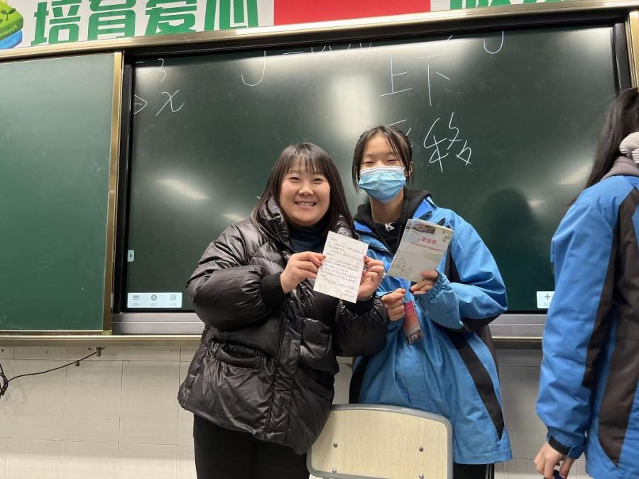 周五课间操时间,学生会组织同学向学校部分老师和同学发放卡片,进行“爱传递”活动,在冬日里为别人送去温暖和关爱。
