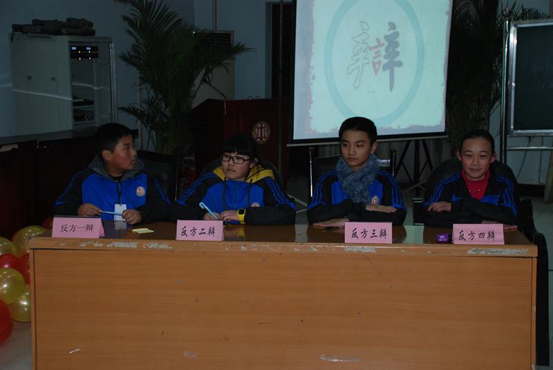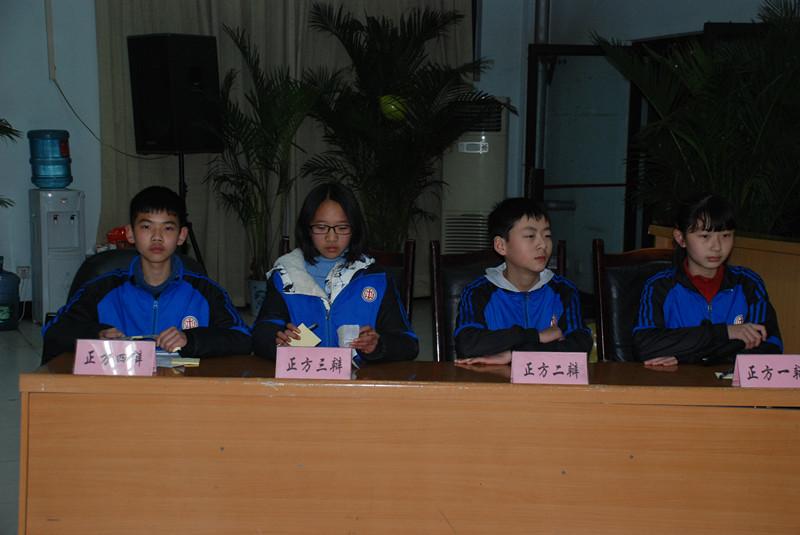 经过近三个月的培训,层层筛选,最终八位选手脱颖而出,他们是:熊馨宁 易黄翔 游羽焓 何子杰 姜卜文 游谨忆 王无忌 郭思怡。当主持人宣布此次辩论赛开始之后,八位选手按照辩论规则依次发表自己的观点。立论环节,正方一辩气势逼人,反方则有条不紊;攻辩环节,双方均以事实为依据,以数据作支撑,狠抓对方漏洞……精彩纷呈;自由辩论环节中更是你来我往互不相让,将整场辩论赛推向高潮;最后,双方四辩用精炼的语言概括了本方的观点,为辩论环节画上一个圆满的句号。