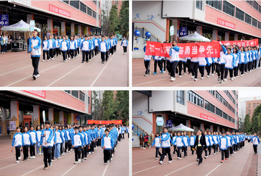 恰同学少年,风华正茂。七年级各班意气风发,精神抖擞,高喊口号排列整齐地陆续进运动场,并在展示区进行了入场表演,展示他们的青春激情和运动风采。