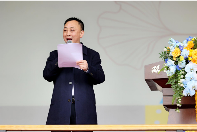 罗校长为运动会致辞,寄语全校同学秉承奥运精神,在比赛中顽强拼搏,奋勇争先,不断超越自我,砥砺自己的身体和精神。
