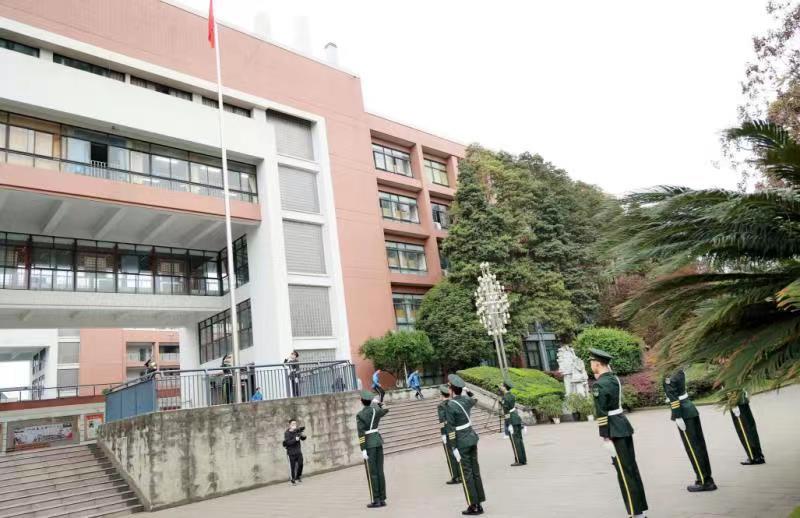 入场式结束后,举行了神圣庄严的升旗仪式。全体师生立正,面向国旗行注目礼。