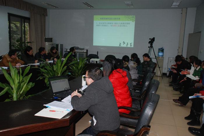 文传福主任首先向所有人员总结本年度总课题组所做的相关研究工作,详细介绍本次年度考核各项要求。随后,分别由思想品德、语文、数学等八个学科教研组承担的一级子课题依次展开汇报展示。5点40分,八个子课题组汇报完毕。文主任就本次年度考核作简要总结,并详细部署下期研究工作。