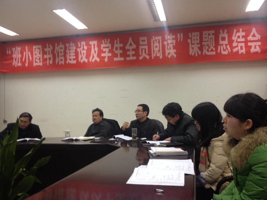 1月16日下午4点,学校“全员阅读与班小图书馆建设”课题组召开了学期总结大会。高校长 、张校长、 周主任 、文主任莅临会议。会议由课题组组长刘瑛老师主持。
