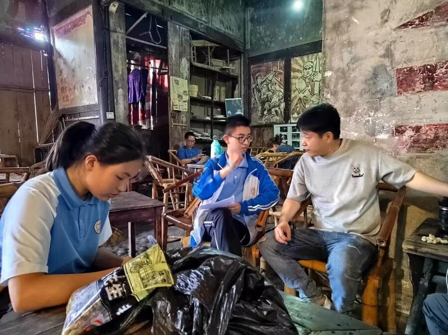 另外,同学们还联系了彭镇街道分管文化宣传的邓凤老师。邓老师就观音阁老茶馆的保护、发展做出了专业的解答,使同学们对地方历史文化遗存的保护和传承有了更深刻的理解。