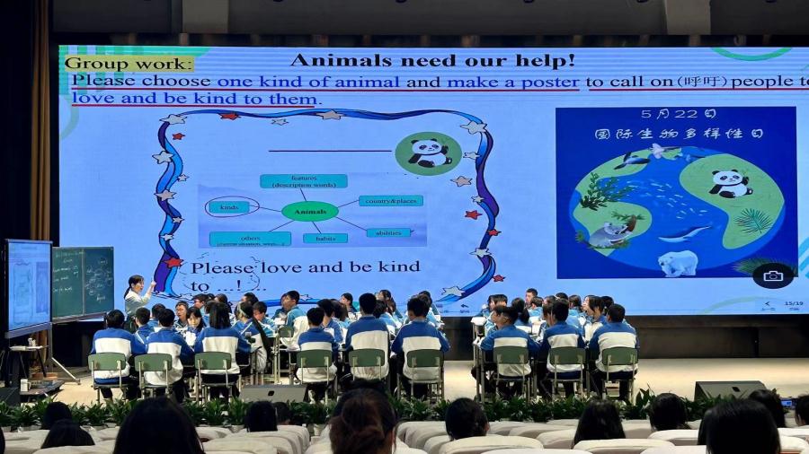 成都立格实验学校附小张翼老师执教四年级下《Why do you like Australia?》通过丰富的活动厘清了故事脉络,拓展了课外阅读,让学生学习了不同动物的特征与生活习性。成外美年校区郑怡老师执教英语阅读课《Frog and Rabbit》巧妙地运用故事中兔子和青蛙之间的三场比赛,让学生理解故事的主题,问题层层递进,充分调动学生思维。