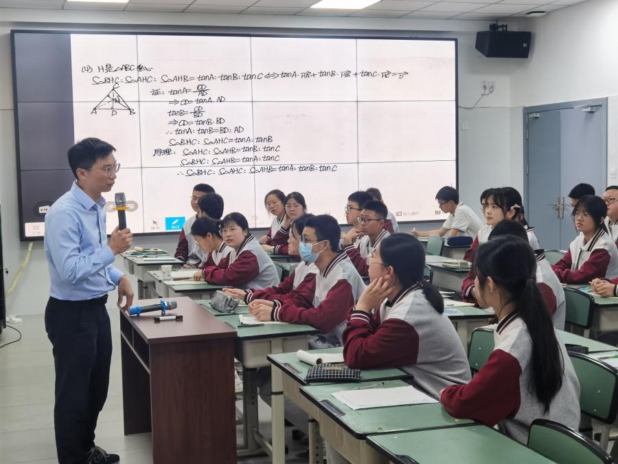 成都立格实验学校傅小波老师执教了《用向量法研究三角形的性质》。通过前期的选题和探究准备,本节课的主题是由学习小组汇报,通过展示、质疑辩论,分享研究的体会,评价探究活动的结果。