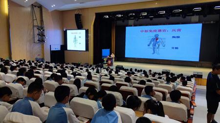 在接下来的时间里,陈教授分别从疫苗的作用与适用性、疫苗为什么要分几次打、我们是否有必要提高免疫力、免疫系统与外排反应等方面用活泼的语言和生动的案例向同学介绍了免疫系统在保护人体健康方面所起的作用。更加可贵的是陈教授适时的穿插了故宫的介绍,从历史的痕迹向同学们展示了我中华民族的骨气,引起了同学们的共鸣。
