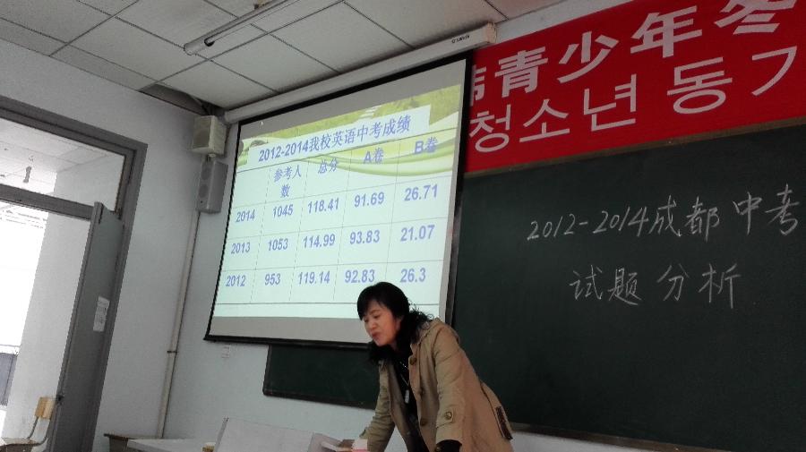 2015年3月16日上午,我校英语组全体老师在校图书馆参加了2015年成都中考英语科目试题分析会议。会议由英语组组长李征老师主持,学校高校长,张校长,杨主任出席了本次会议。