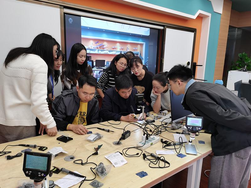 为了提升小组研究性学习课题组教师的指导能力,10月23日在立格实验学校创客中心举行了蓝牙音箱电路制作的培训会。