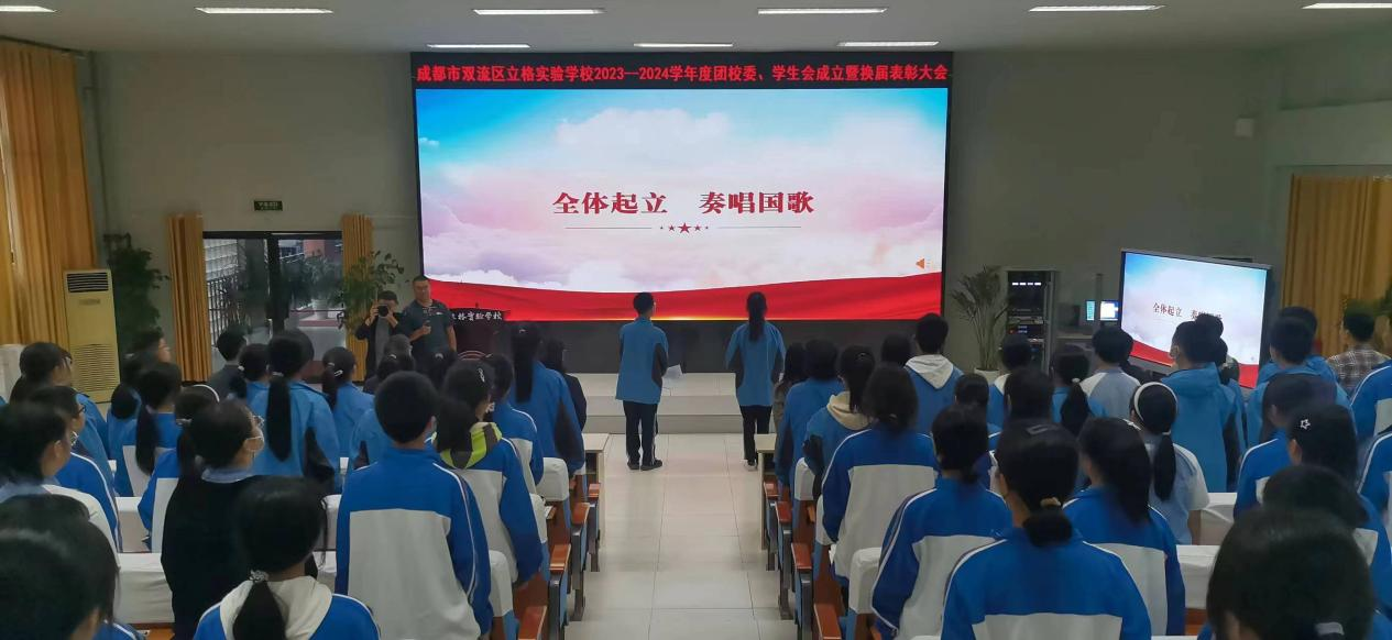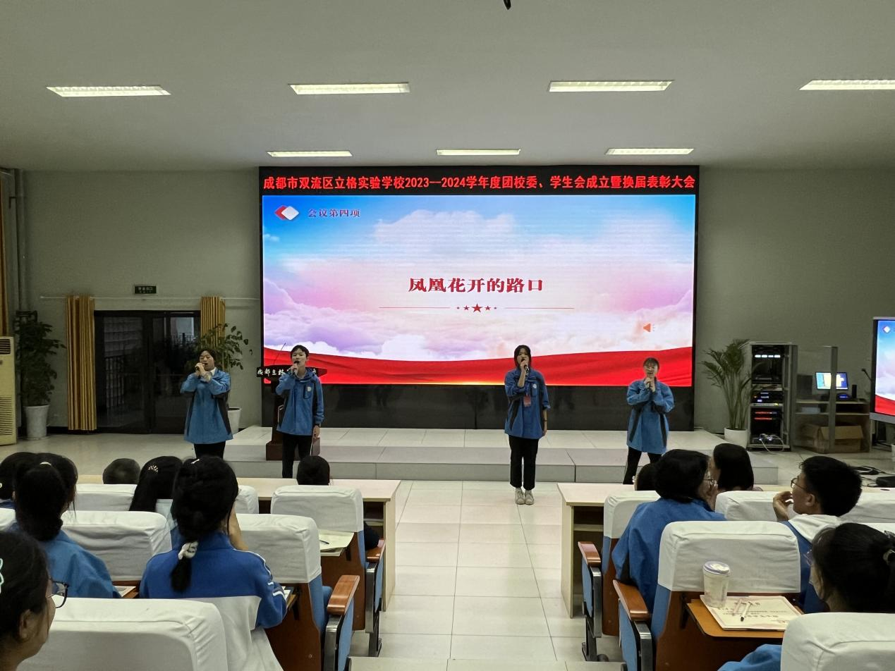 近期,我校在学术演讲厅召开了新一届团校委、学生会成立暨表彰大会。龙清明校长、德育处王敏蓉主任、团校委书记王俊老师、高中部学生发展中心赵鹏飞老师和德育处全体教师出席,团校委、学生会学生干部100余人参加了此次活动。